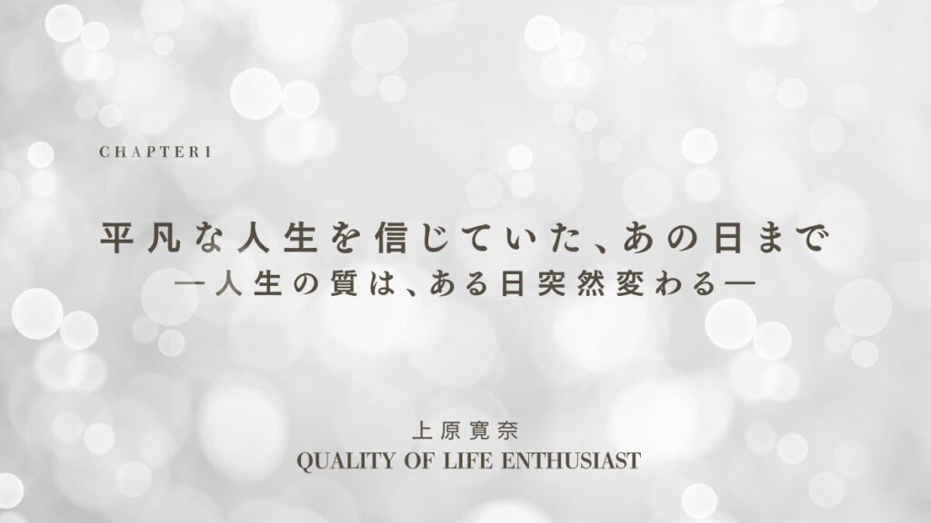 平凡な人生を信じていた、あの日まで ― 人生の質は、ある日突然変わる ―