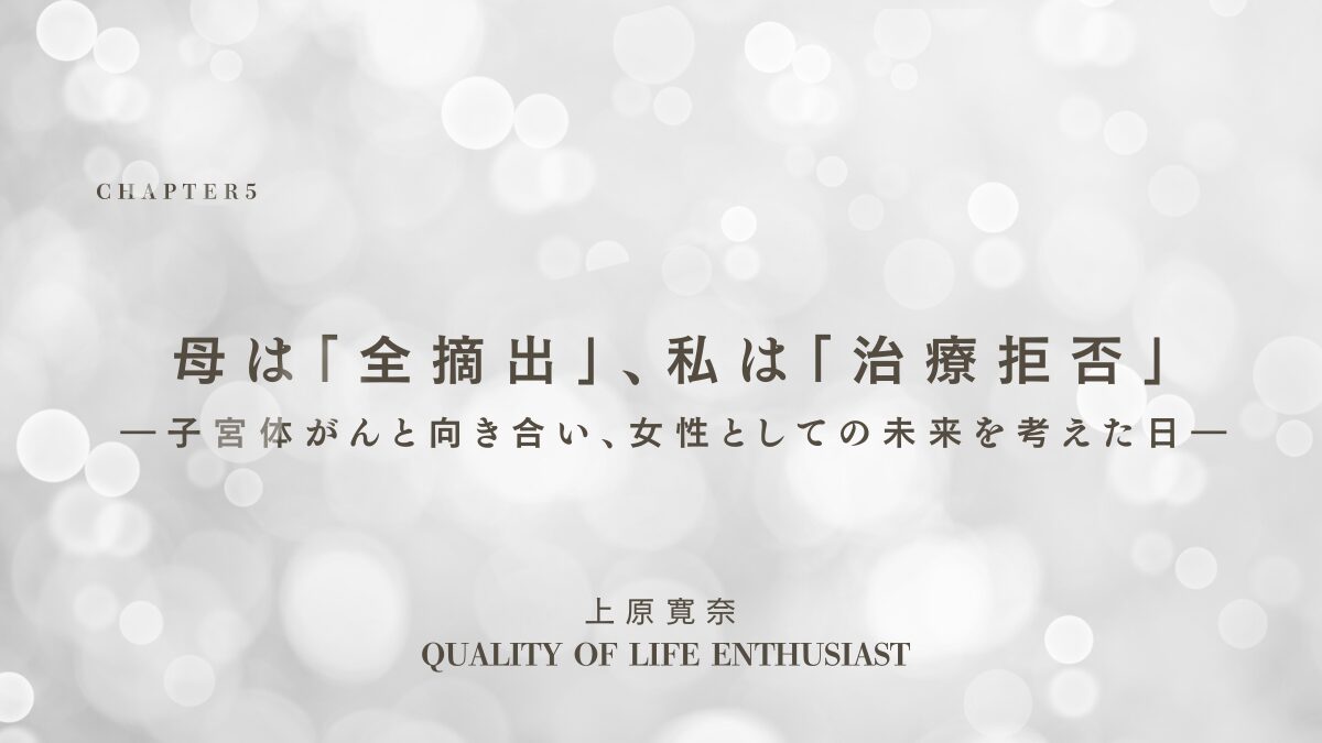 婦人科系がんは、出産を望む女性にとって「女性として女性を乗り越えなければならない試練」の一つなのだ。